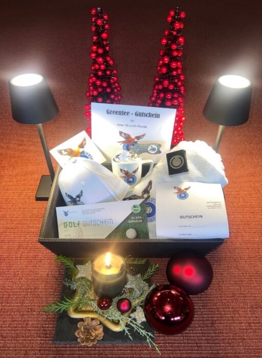 Verschenkt in diesem Jahr doch einfach ein Stück Golf-Club Eifel: Unsere festlichen Geschenkpakete enthalten liebevoll zusammengestellte Fan-Artikel, Gutscheine und sogar eine Trainingseinheit bei Pro Mirko Sawitzki. Sie sind ideal für Mitglieder, Gäste oder alle, die unserem Club verbunden sind. Erhältlich im Sekretariat – solange der Vorrat reicht! Alle Inhalte und Preise der beiden Geschenkpakete findet ihr in der ausführlichen Übersicht: